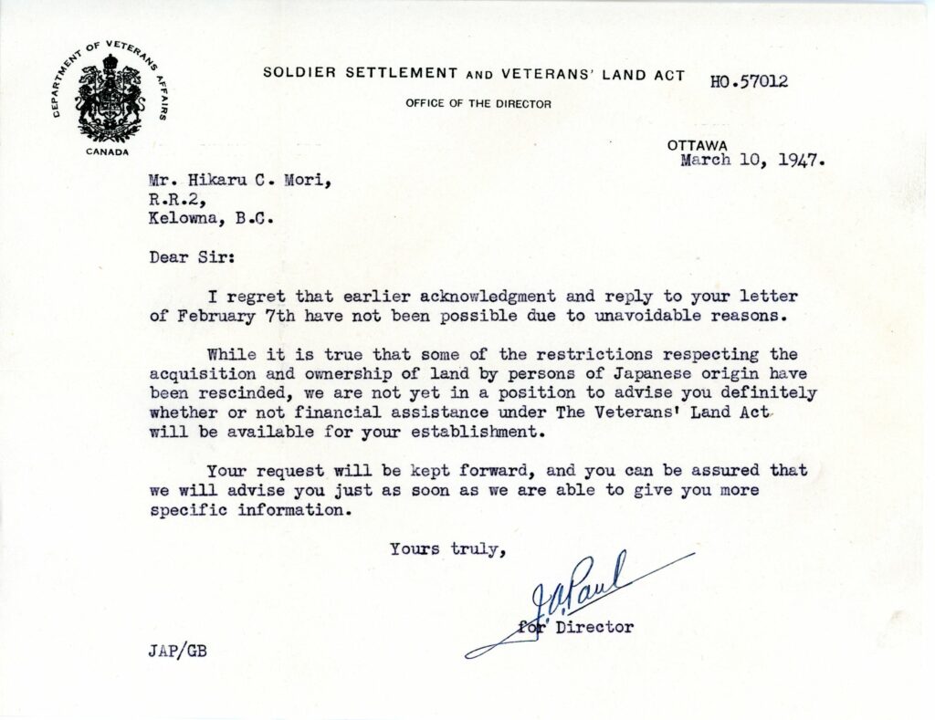 Chic was honourably discharged from service on April 12, 1946, in Vancouver to face continued discrimination, such as registering for a travel permit with the R.C.M.P. to justify his presence within 100 miles of the coast and Veteran Land Act criteria. Hikaru Chic Mori married in 1956 and worked at Kelowna Nurseries until retirement in 1988. Veteran Chic Mori died in his hometown, Kelowna, on June 13, 2020.