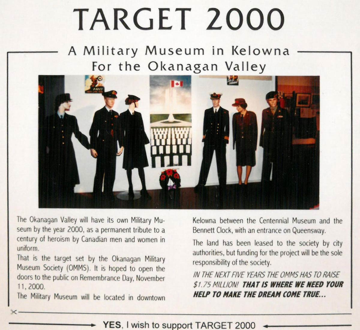 A dedicated group of veterans and volunteers created the Okanagan Military Museum Society (OMMS) in 1987 with a goal to collect, preserve and exhibit militaria related to local contributions to Canada’s military history.