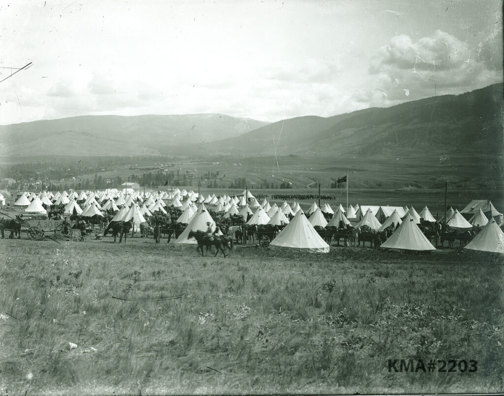 During WWII, many Canadians came to the Vernon Military Camp for their initial army training. In the waters of nearby Lake Kalamalka, these trainees learned the military basic skills required before they went overseas to the frontlines of the war in Europe. It was here that they conducted training in disembarking from troopships that would be put to use off the beaches of Normandy on June 6, 1944. The Vernon Military Camp operated in conjunction with the Army’s Battle Drill School nearby in Coldstream in producing trained soldiers.